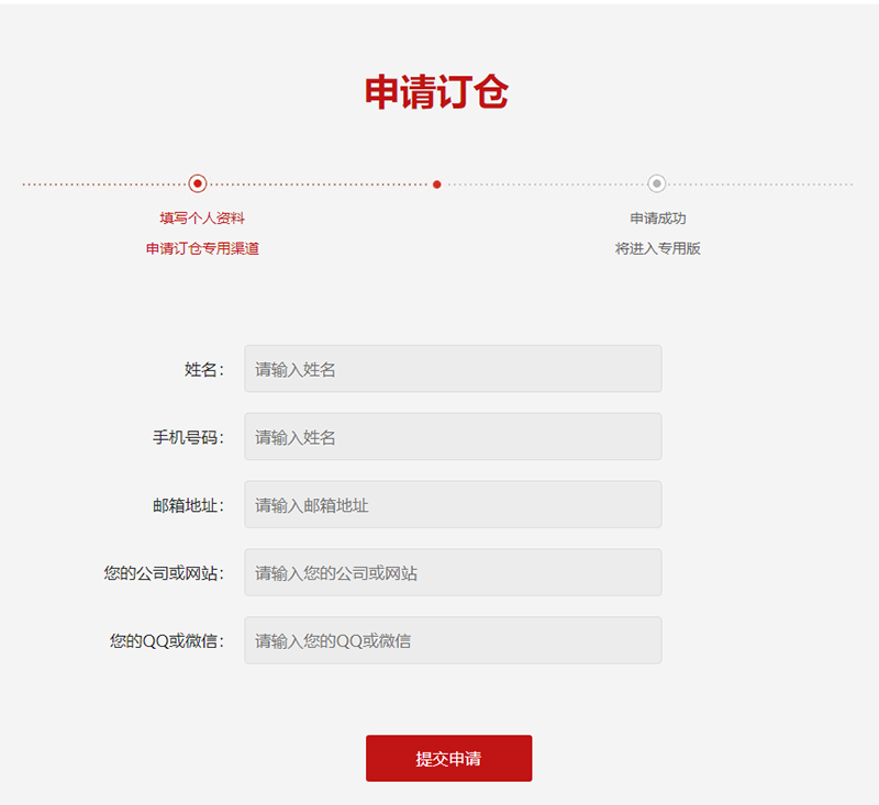 一般包括姓名、手機號碼、郵箱地址、你的公司或者網(wǎng)站名、聯(lián)系QQ或微信,填寫完畢就提交申請~是不是很簡單呢?