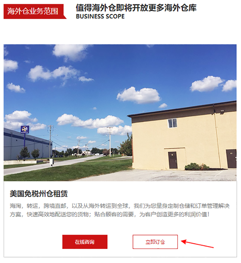 我們進入官網(wǎng)可以看到,他們有租賃美國倉業(yè)務的,右上角有咨詢在線客服,在預定美國電商倉庫有任何不懂的都可以問他們,當讓也可以在租賃美國倉的頁面咨詢也是一樣的。他們的客服一直都很專業(yè),有著豐富的倉庫租賃經(jīng)驗,絕對能給你滿意的回答。
