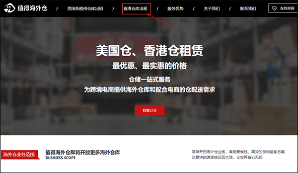 不知道怎么租賃香港倉庫的電商首先進入值得海外倉庫的官方網站:http://m.cz-hualing.com.cn/,在租賃之前最好先看一下公司的業務(公司介紹、業務范圍、開倉流程等)可以咨詢在線客服,詢問租賃香港倉庫的相關事宜。頁面還收錄著優質客戶對公司的反饋,賣家也可以參考看看。然后點擊立即訂倉,在客服的指導下完善信息即可!